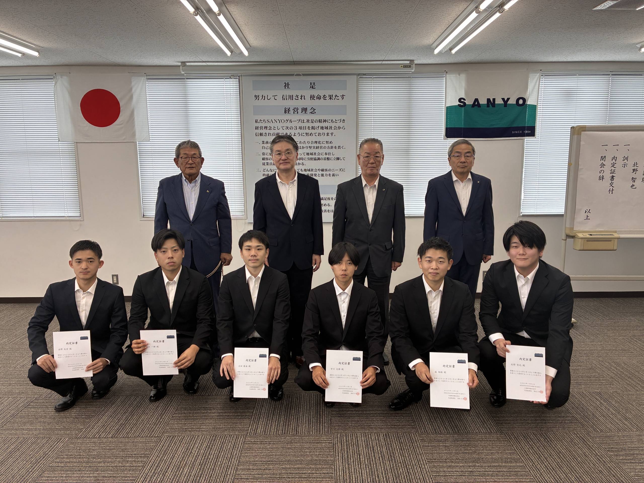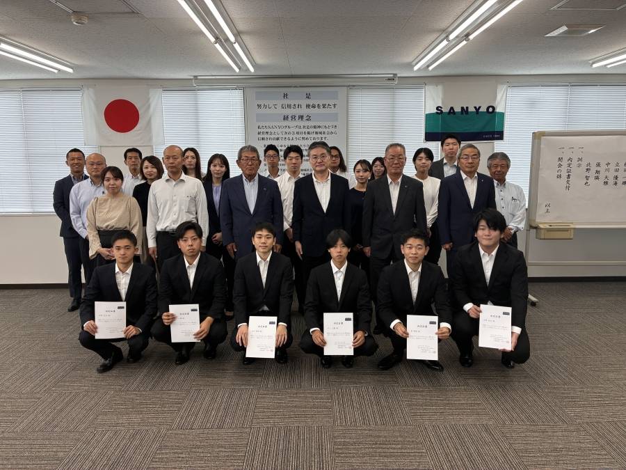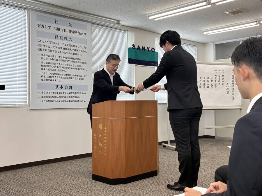 お知らせ2026年度内定式を執り行いました 2025年10月4日 2026年度入社予定者の内定式を開催いたしました 内定証書の授与の様子 最後にみんなで記念写真を撮って終えました。 来年4月より弊社の仲間として活躍してくれることを 社員一同楽しみにしております。